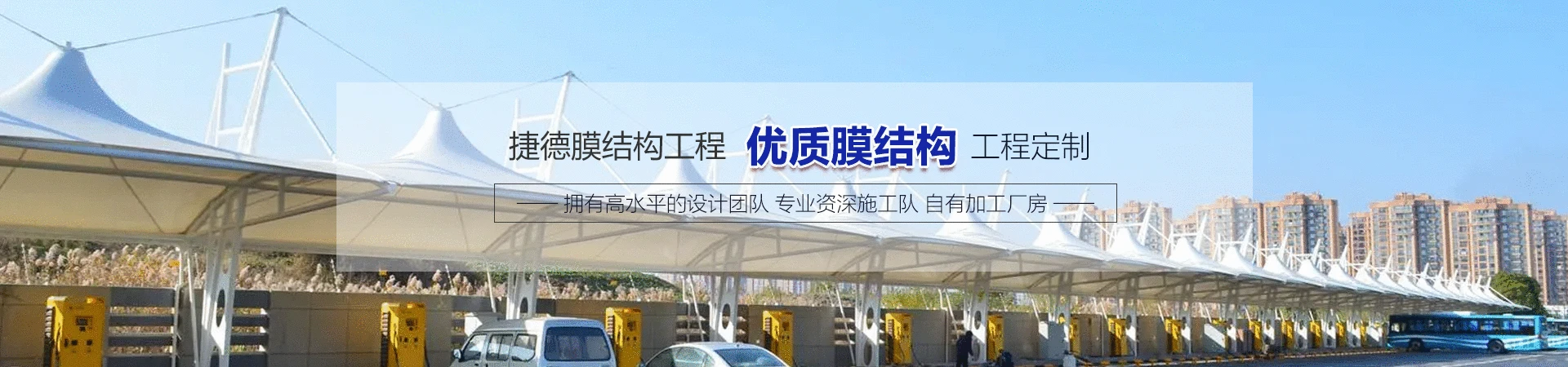 开封市捷德膜结构工程有限公司是一家致力于膜结构工程领域的专业公司,主要从事膜结构设计、制作、施工、后期维护等一系列服务,集科研开发与生产制造为一体的科研生产型企业。公司立足中原,辐射华北、华中地区数十省,是国内较早最具规模的膜结构工程企业之一。 公司拥有占地6000余平米的现代标准化加工车间,多台大型膜材加工设备、等离子数控切割设备及气体保护焊设备。在软件方面拥有欧洲最先进膜结构计算软件FORTEM32,美国著名的钢结构STAAD2000,SAP2000软件,且汇集了一支国内最早从事膜结构工程的设计、施工团队,充分保证了工程的质量及客户对造型的要求